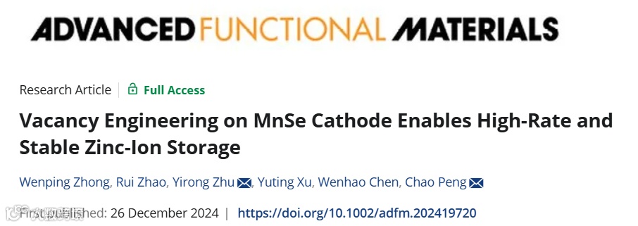 Vacancy Engineering on MnSe Cathode Enables High-Rate and Stable Zinc-Ion Storage.