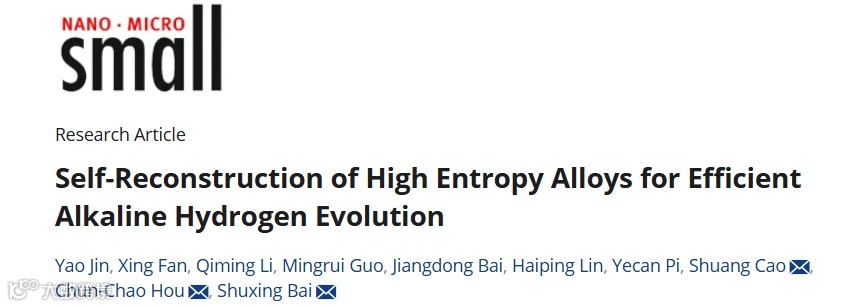 白树行教授,Small观点:高熵合金自重构后形成的高熵合金-钌酸钴盐界面有利于提高碱性电解水析氢性能
