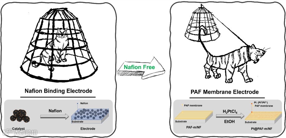 图1. Nafion粘结电极和PAFs膜电极示意图。