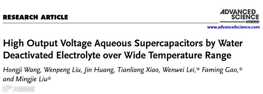 宽温度范围内通过水失活电解质实现高输出电压水系超级电容器