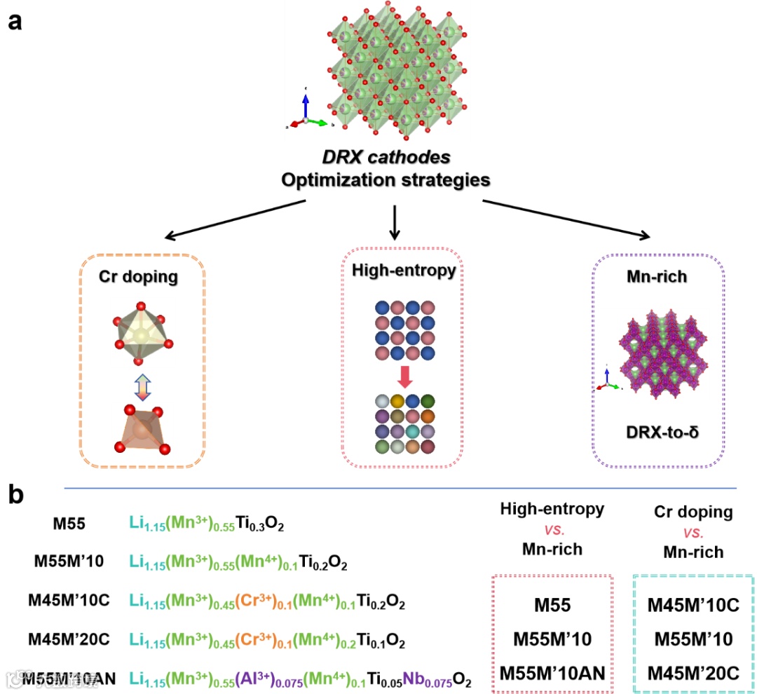图1. DRX阴极不同优化策略及组分设计。