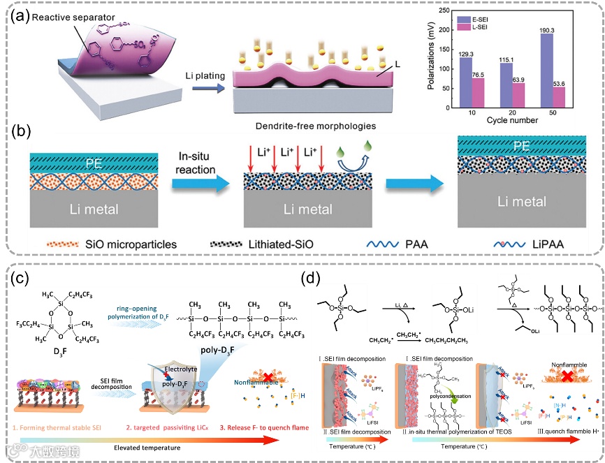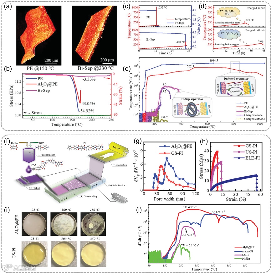 图1. 锂电池热失控发展时序以及热失控阻断隔膜分类。