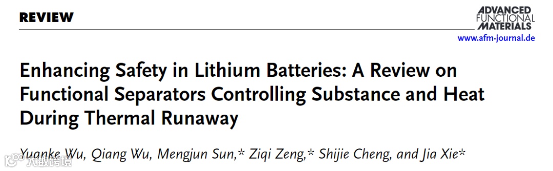 Yuanke Wu, Qiang Wu, Mengjun Sun,* Ziqi Zeng,* Shijie Cheng, and Jia Xie*,Enhancing Safety in Lithium Batteries: A Review on Functional Separators Controlling Substance and Heat During Thermal Runaway,Adv. Funct. Mater. 2025, 2425698.