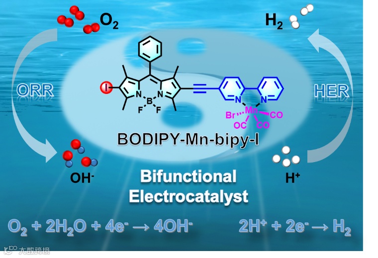 图1. BODIPY-Mn-bipy-I具有ORR/HER双功能电催化活性。