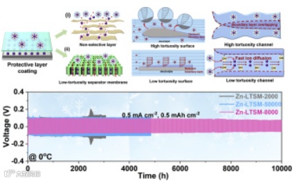 『水系锌电』华东理工詹亮、王际童&华北电力顾佳男& Helmholtz Institute Ulm电化学能源研究所王健ESM:低迂曲度快速膜离子传导膜助力低温锌金属电池