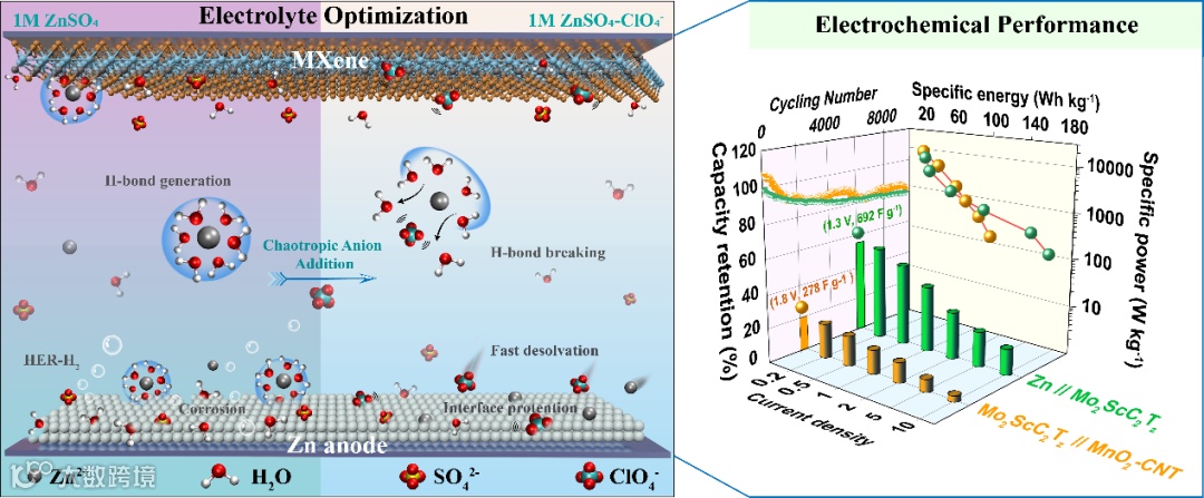 电解质工程设计优化,引入离液阴离子调控稳定水系电解质,赋能MXene高效储锌