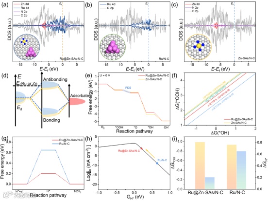 图 6. Ru@Zn-SAs/N-C的理论计算结果分析。