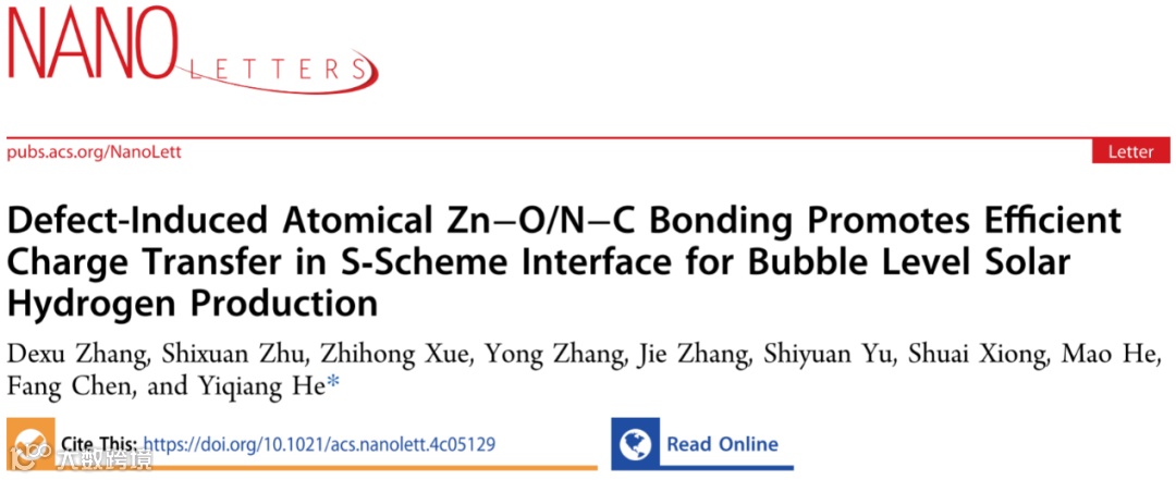 缺陷诱导的原子Zn−O/N−C键促进了气泡级太阳能制氢的S - Scheme界面中有效的电荷转移