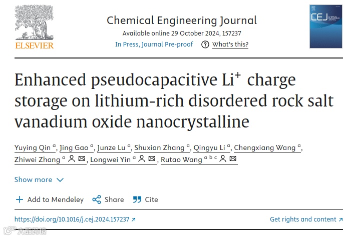 富锂无序岩盐氧化钒纳米晶体增强赝电容型储锂性能