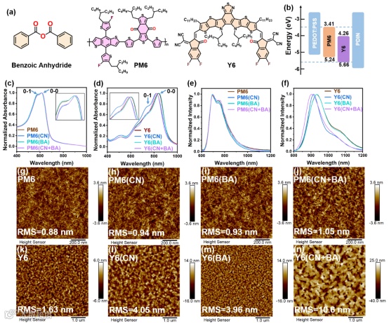 图1. 添加剂对给体受体分子聚集和表面形貌的影响