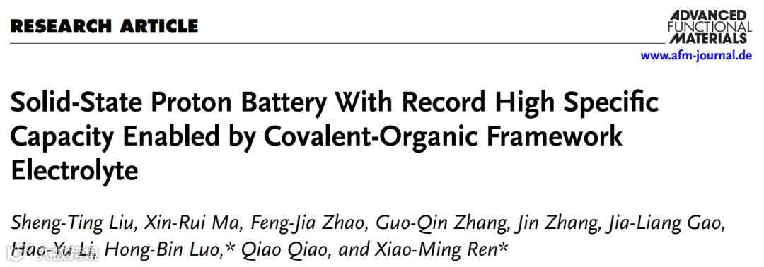 Solid-State Proton Battery With Record High Specific Capacity Enabled by Covalent-Organic Framework Electrolyte