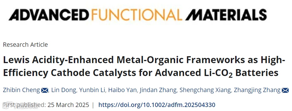 基于此,福建师范大学化学与材料学院张章静、程志斌研究团队在知名期刊Advanced Functional Materials(IF: 18.5)上发表题为“Lewis Acidity-Enhanced Metal-Organic Frameworks as High-Efficiency Cathode Catalysts for Advanced Li-CO2 Batteries”的研究工作。