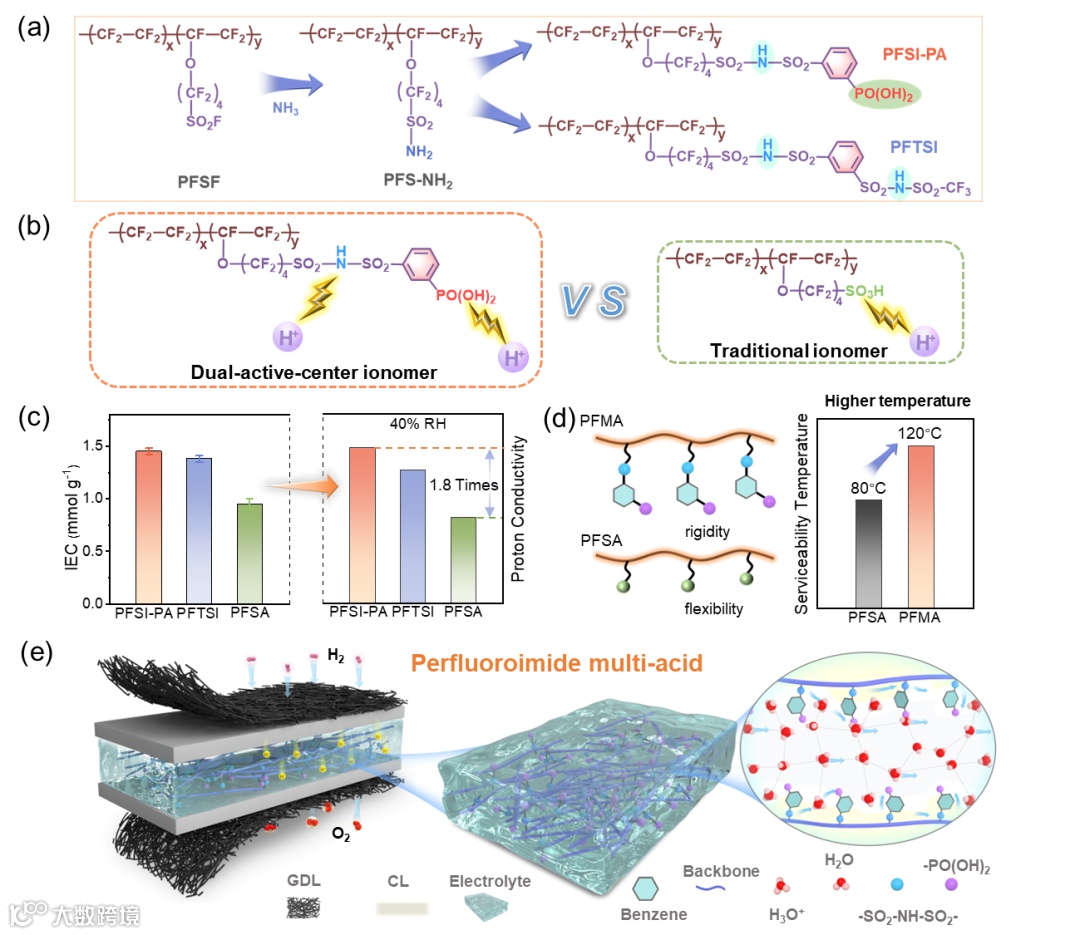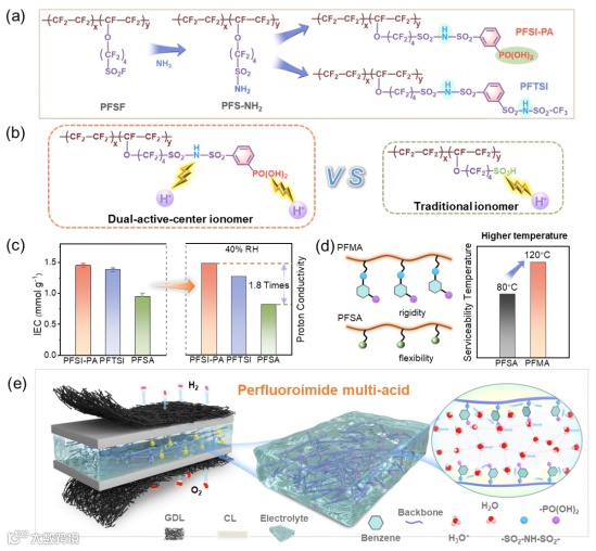 双活性中心质子交换膜突破传统燃料电池的温度限制