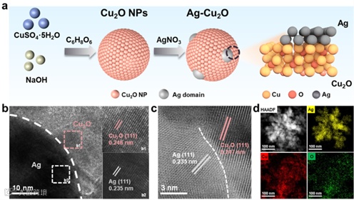 首先合成了Ag-Cu2O催化剂,通过TEM和HRTEM表征说明了Ag和Cu2O之间具有紧密的界面。