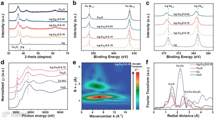 XRD进一步证明了催化剂的相分离,XPS说明了Cu2O和Ag之间的电子转移,同步辐射结果说明了Ag的引入对Cu-O键和Cu+的价态没有影响。
