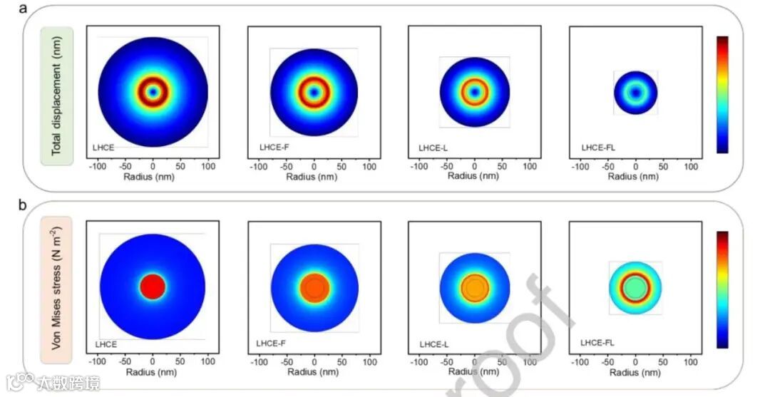 图4:COMSOL建模对Si NPs膨胀后应力和应变的模拟