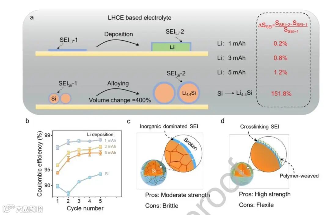 图1. LHCE基电解质中锂和硅负极的差异。