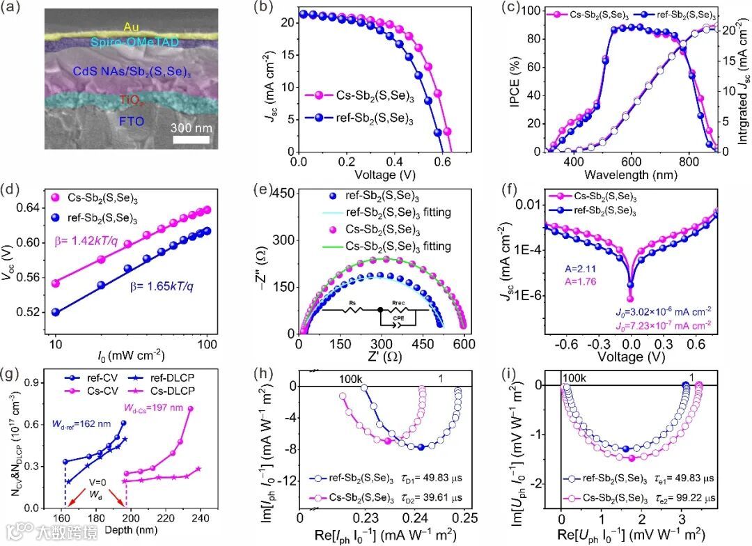 图3. Sb2(S,Se)3太阳电池微结构、器件性能、载流子输运特性及寿命表征