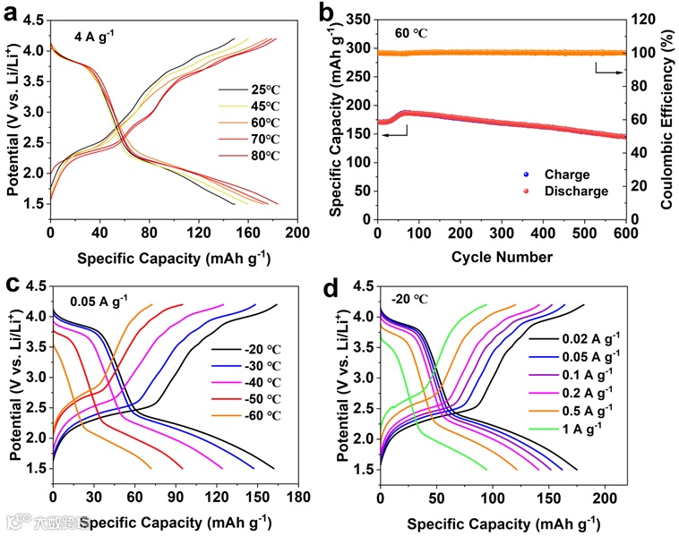高电位、稳定的双极性有机正极可用于快充、宽温域工作的有机物电池体系