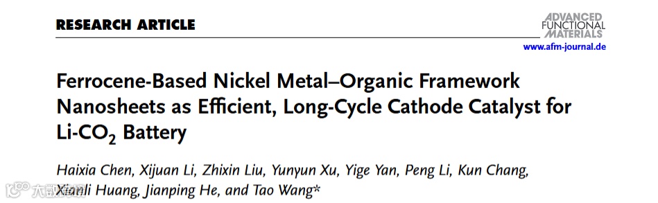 二茂铁基镍金属有机框架纳米片作为Li-CO2电池的高效、长循环正极催化剂