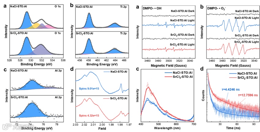 通过使用SrCl2作为助溶剂,成功合成了具有规则圆角多面体形态的SrTiO3:Al颗粒,这些颗粒暴露出{100}、{110}和高指数{112}晶面。通过EPR体相技术与XPS表面技术揭示:相比用NaCl合成的不规则SrTiO3:Al颗粒,这些规则圆角多面体SrTiO3:Al颗粒拥有更高的表面活性和显著较低的内部缺陷密度。这表明,熔盐的选择对于控制SrTiO3:Al的晶面调控和减少内部缺陷至关重要。