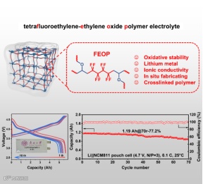 图1. 主链氟化聚合物电解质FEOP与固态锂金属软包电池性能。