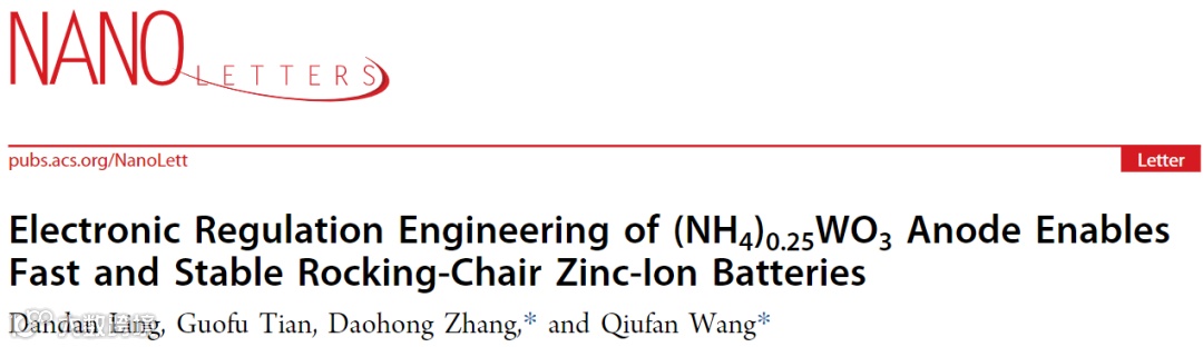 (NH4)0.25WO3阳极电子调控工程实现快速稳定的摇椅式锌离子电池