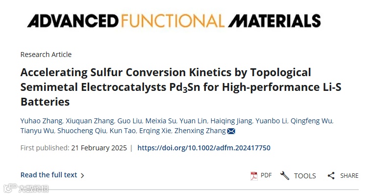 拓扑半金属电催化剂Pd₃Sn用于高性能锂硫电池多硫转化