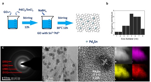 图2. Pd3Sn@rGO的制备过程及微观结构表征。