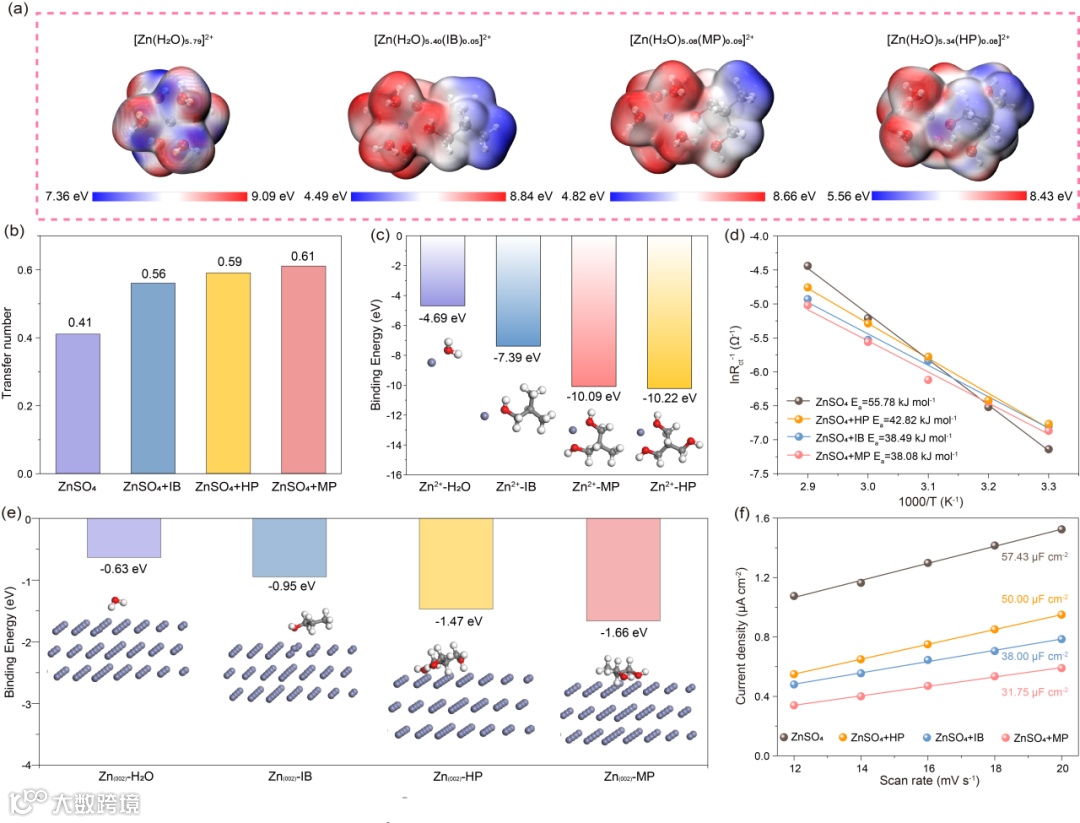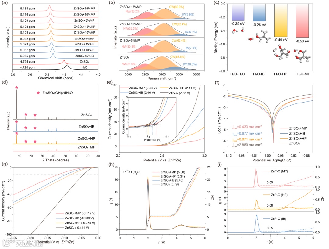 图2. 不同电解质溶剂化结构及抗腐蚀性能表征。