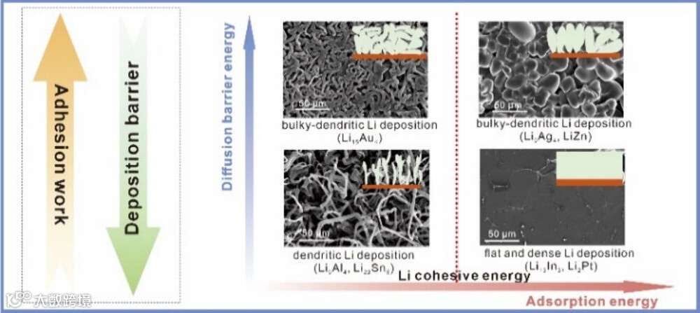 图 4锂沉积形貌与其在基底上的热力学/动力学性质之间的关系