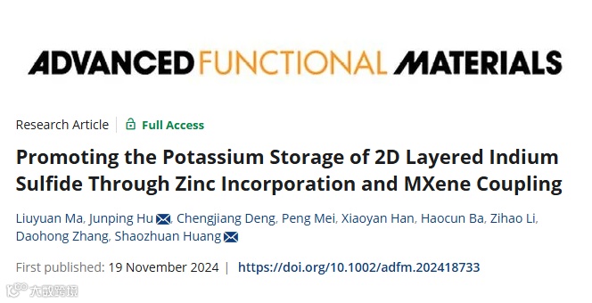 Promoting the Potassium Storage of 2D Layered Indium Sulfide Through Zinc Incorporation and MXene Coupling, 2024, 2418733, DOI: 10.1002/adfm.202418733.