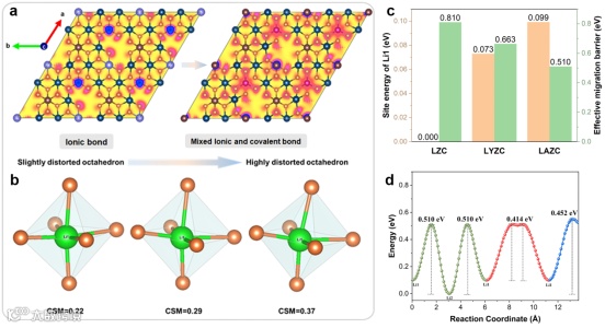 图 3. 化学键调控诱导的局域晶格畸变对锂离子迁移势垒的影响
