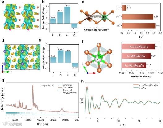 传统取代掺杂主要通过优化载流子浓度或调整晶格结构来提升离子传导性能。而这项研究更进一步,探索了掺杂对化学键的调控作用。研究发现,引入高电荷密度阳离子(如Al³⁺和Fe³⁺)可以增加金属-卤化物(M-X)键的共价性,从而在局部形成不对称力场。这种调控显著提高了位点能量,降低了离子迁移势垒,最终大幅提升了离子传导性能。