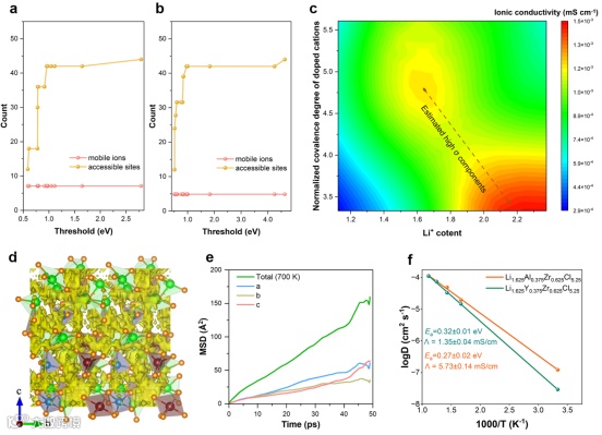 图 4. 离子电导率与共价性、载流子浓度关系的理论计算模拟及实验验证