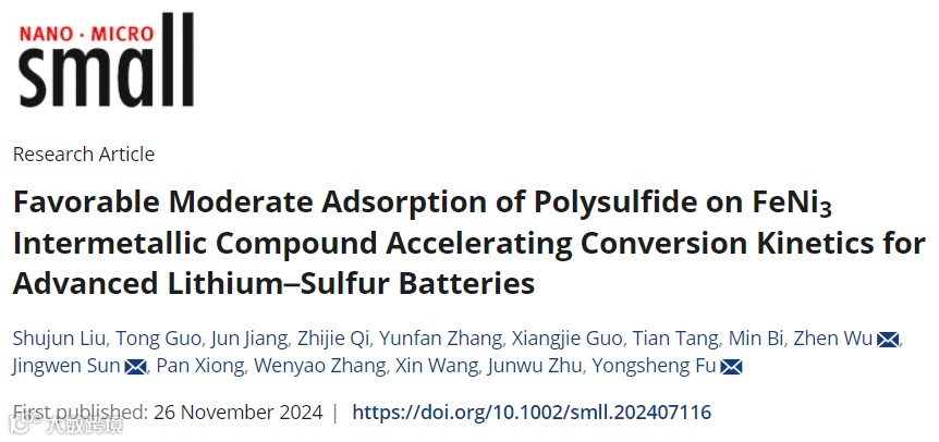 基于FeNi3金属间化合物实现适度吸附多硫化物加速锂硫电池催化转化动力学