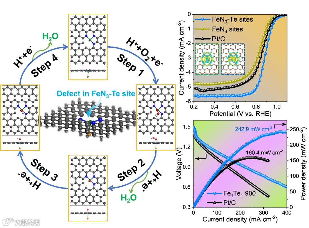 图1. 富含缺陷Fe-N3位点与轴向配位的Te原子催化剂在ORR催化中获得优异性能