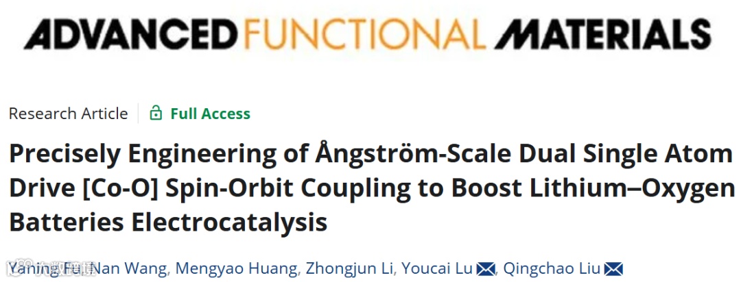 埃尺度双单原子驱动[Co-O]自旋轨道耦合促进锂氧电池电催化的精确工程