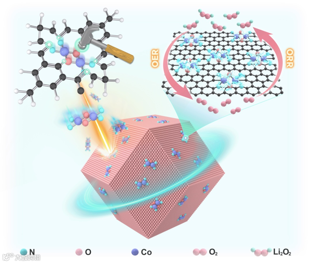 示意图:双单原子Co的精确合成过程,通过增强自旋轨道耦合加速Li-O2电池的氧化还原动力学。