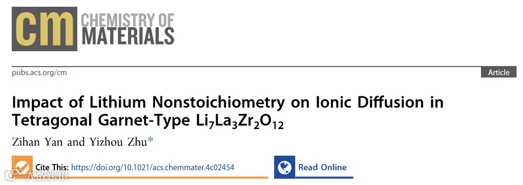 近日,西湖大学朱一舟教授团队在国际知名期刊Chemistry of Materials上发表了题为“Impact of Lithium Nonstoichiometry on Ionic Diffusion in Tetragonal Garnet-Type Li7La3Zr2O12”的研究论文。该研究利用先进的机器学习神经演化势分子动力学模拟,深入研究了锂非化学计量对LLZO中离子迁移的影响机制,获得了与实验相当一致的活化能和离子电导率,填补了现有研究的空白。
