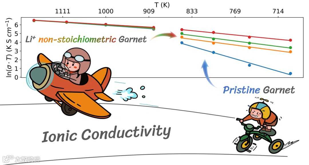 图片摘要:锂非化学计量的LLZO离子电导率显著高于本征LLZO