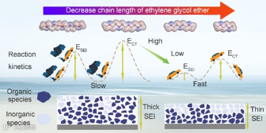 图1. 醚类溶剂链长对于反应动力学以及界面的影响。