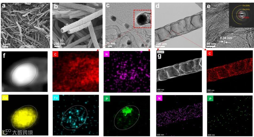 图2. 双功能催化剂CoFe/CoFeP@NPC的形貌图。