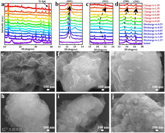 图 3.VSe2/V2O5⋅nH2O/rGO的非原位XRD及非原位FESEM