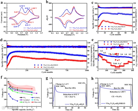 要点二:VSe2/V2O5⋅nH2O/rGO具有优异的电化学性能