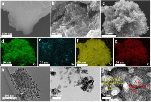 图1. VSe2/V2O5⋅nH2O/rGO 复合材料的微观形貌