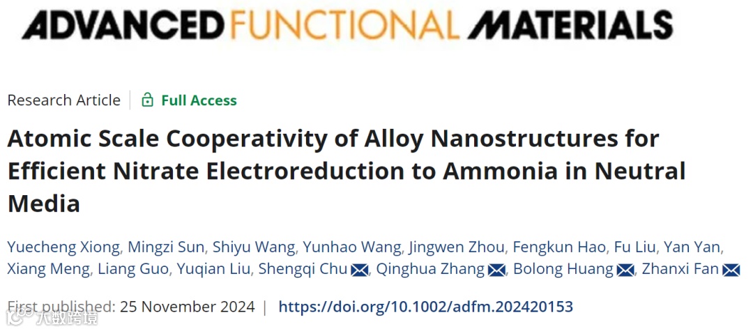 合金纳米结构的原子尺度协同作用助力在中性介质中硝酸盐高效电还原合成氨