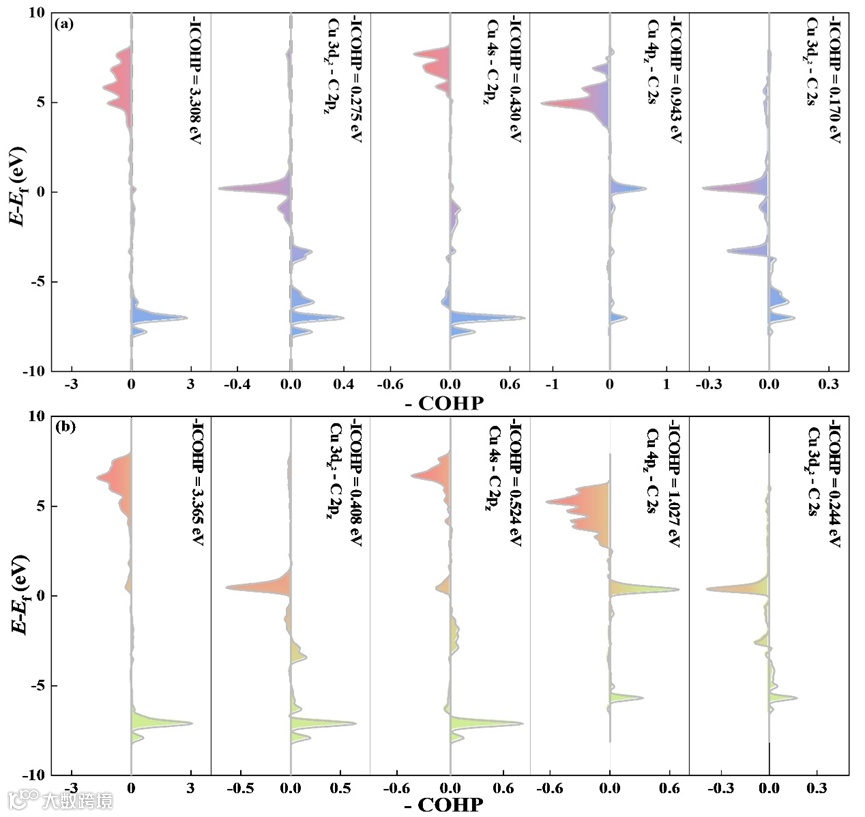 图9. (a)ZIS/Cu2S吸附CHO的COHP图;(b)ZIS/Cu1.81S吸附CHO的COHP图。