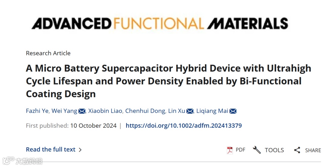 双功能涂层设计实现高循环寿命、功率密度的电池-超级电容器混合微型器件