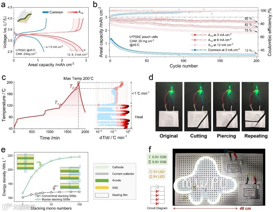 此外,采用这种新型厚电极的固态袋式电池在热安全性能和机械耐受性方面也表现出色。更重要的是,通过双极堆叠技术,电池的电压和体积能量密度得到了显著提升,为固态电池的商业化应用奠定了坚实的基础。